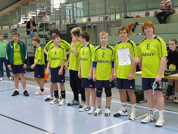 Die Handballschulmannschaft (Klassenstufe 7-9) der Mittelschule Regis-Breitingen nahm am 28.01.2011 am Regionalfinale „ Jugend trainiert für Olympia – Handball“ in Markranstädt teil. Gegner waren eine Auswahl der Neuen Nikolaischule Leipzig und der Mittelschule Naunhof. In beiden Spielen musste unsere Mannschaft erst ins Spiel finden. Niemals gaben die Spieler auf, feuerten sich gegenseitig an und konnten letztendlich die Spielführung übernehmen. So gewannen sie beide Spiele, gingen als Sieger des Regionalfinales hervor und sicherten sich somit die Teilnahme am Landesfinale von Sachsen im März in Zwickau. Ein Dank an die handballbegeisterten Eltern, die als Trainer und Fahrer unsere Spieler unterstützten. Presseclub MS Regis-Breitingen |