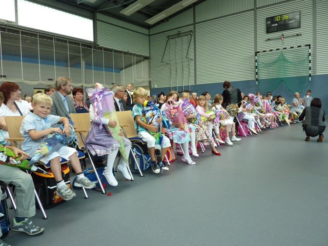 Anschließend lernten die Kinder noch ihr Klassenzimmer kennen und hatten auch schon ihre erste kleine Unterrichtsstunde, bevor dann mit der Familie am Nachmittag kräftig weiter gefeiert wurde. Die Schüler, Horterzieher und Lehrer wünschen unseren Jüngsten einen tollen Start und vier wunderbare und erfolgreiche Jahre an unserer schönen neuen Grundschule! |