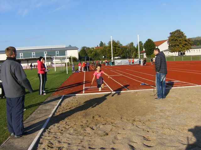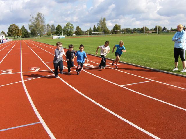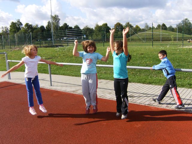 „Sport frei!“ hieß es am Mittwoch, den 19. September 2012 auf dem Sportplatz von Regis-Breitingen, als sich alle vier Klassen zum gemeinsamen Sportfest trafen. Nach einer kurzen Erwärmung kämpften die Kinder in den Disziplinen Weitsprung, Weitwurf und 50m- Sprint um tolle Weiten und Zeiten, denn jeder wollte möglichst viele Punkte im Dreikampf sammeln, um eine der begehrten Urkunden zu ergattern. |