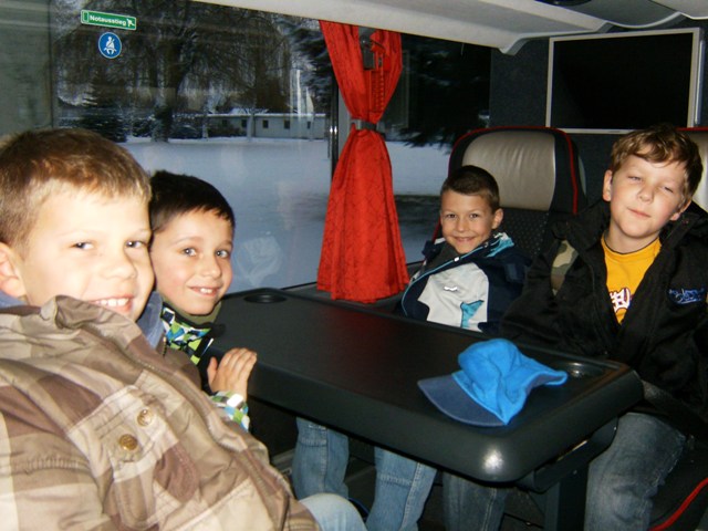 Leon F., Leon G., Philip und Felix mit bester Laune in unserem tollen Bus |