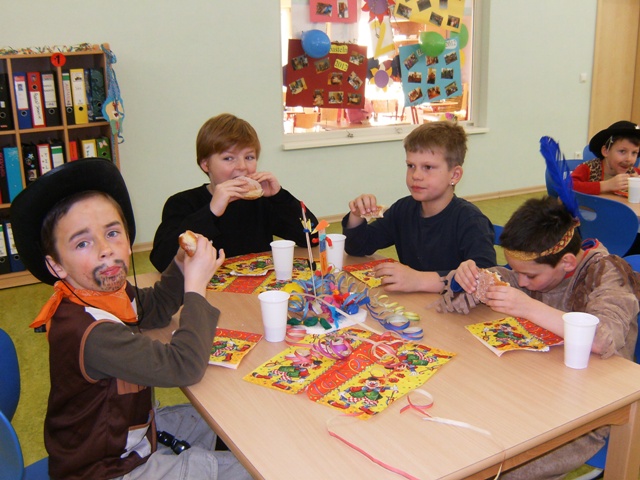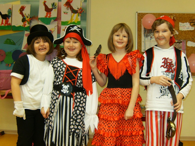 Am Donnerstag, den 31.01.2013 trafen in unserer Schule die lustigsten, schönsten, gefährlichsten und gruseligsten Gestalten aufeinander. Was war da bloß los?! Na klar! Es war Fasching und wir begrüßten diesen Tag der Narrenfreiheit mit unserem Faschingslied und einer zünftigen Polonaise quer durch das Schulhaus. Dann verteilten sich die Prinzessinnen, Piraten, Ninjas, Clowns und Cowboys sowie ungezählte Tiere in ihre Klassenzimmer, wo lustige Faschingsspiele mit dem Klassenleiter - in Klasse 1 feierte die Horterzieherin Frau Reusch mit - durchgeführt wurden. Die Kinder versuchten sich beim Phantomime-Spiel, spielten die ''Reise nach Jerusalem'' und kürten das beste Paar beim Luftballontanz. Zwischendurch stärkten sich alle Klassen im Faschingscafe bei Pfannkuchen und Getränken, welche von unserem fleißigen Elternrat und Frau Tschirner serviert wurden. |