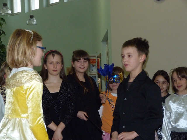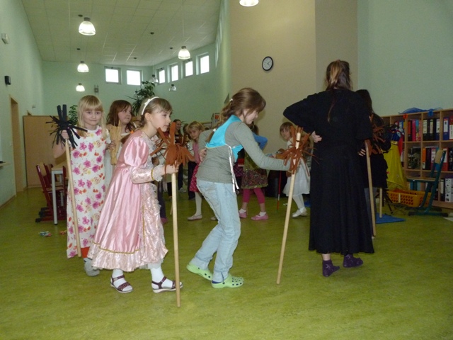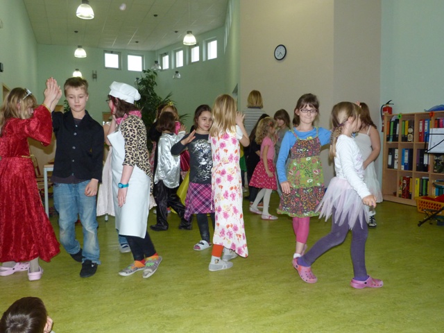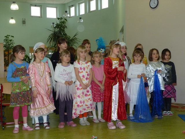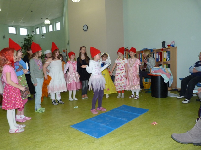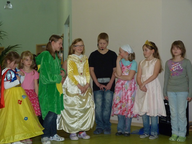 ein Lied oder einen Tanz. Das Märchen vom Froschkönig war der Höhepunkt. Alle Kinder halfen beim Basteln der Requisiten und brachten ihre hübschen Kostüme mit. |
