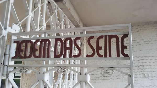 Zuerst schauten wir einen Film an, welcher sehr ergreifend war. Danach teilten wir uns in verschiedene Gruppen auf und schauten uns das KZ-Gelände näher an. Zuvor wurden wir mit I-Pods ausgestattet, so dass wir selbständig herumlaufen und uns wichtige Informationen zu den verschiedenen Plätzen und Gebäuden anhören konnten. Meine Gruppe und ich gingen zuerst zur Buchenwaldbahn. Weiterhin sahen wir uns die ehemalige Lagerkommandantur, den SS-Zoo und die Politische Abteilung an. Außerdem das Lagertor mit der Inschrift „Jedem das Seine“, die Goethe-Eiche und das Krematorium.