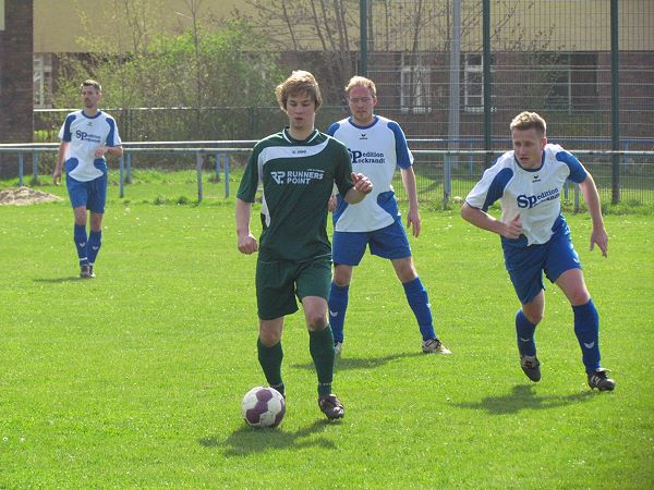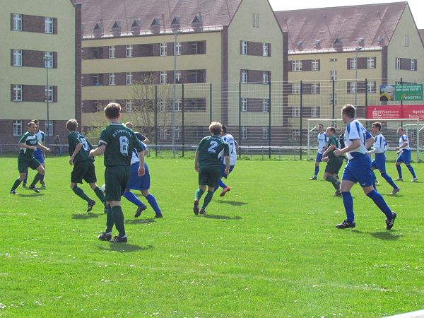 Nach dem Seitenwechsel vier Lipsia - Tore in 17 Minuten durch Tim Teichert Die Fußballer unseres SV Regis-Breitingen spielten auswärts in Leipzig. In der Fußball-Bezirksklasse (vor 120 Zuschauern) verlor unser SVR mit 5:0 Toren beim Spitzenreiter Lipsia Eutritzsch. Im ersten Spielabschnitt spielten wir gut mit, hatten auch Torchancen, doch kurz vorm Pausenpfiff fiel das 1:0 für Lipsia (Torschütze: Rene Steuernagel). Im zweiten Spielabschnitt schoss Tim Teichert vier Tore innerhalb von siebzehn Minuten und wir verloren mit 5:0 Toren. Bei den Toren passierten unserer Abwehr und unserem Torwart vermeidbare Fehler. Am Sonntag spielte unsere zweite SVR-Elf im heimischen Dr.Fritz-Fröhlich-Stadion gegen Kohren-Sahlis Zweite. Das Einbahnstraßenspiel gewannen wir hoch mit 10:1 Toren (Pause 7:0). Unsere Tore schossen eins Sebastian Thiel, drei Christoph Rother und sechs Sebastian Pfaff. Erst danach fiel das Ehrentor der Gäste. Anzumerken sei noch, daß die Pfaff-Tore zwei Hattricks waren. Dazwischen lag ein anderes Tor. Christoph Rother und Sebastian Pfaff sind in der Kreisliga C-West (früher 2.Kreisklasse) seit Jahren erfolgreiche Torschützen. |