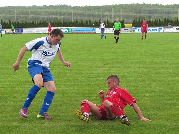 Am Muldenzusammenfluss spielten zwei Teams gegeneinander, deren Trainer sich noch aus Böhlener Oberligatagen kennen. Unser SV Regis-Breitingen (nur 2 Wechsler) gewann mit 0:3 Toren gegen Eintracht Sermuth. Unsere Zanirato-Elf spielte zielstrebig nach vorn, doch viele Pässe kamen im Sturm zu ungenau an. Somit konnten die Eintrachtler immer wieder klären. Bei ihren Gegenangriffen strahlte die Elf des ehemaligen Oberliga-Torschützenkönigs (Klaus Havenstein) wenig Torgefahr aus. Somit stand es zur Pause noch torlos. Mit dem Wiederanpfiff wäre Christoph Rother (SVR) beinahe das Führungstor gelungen, nach einem Torwartfehlgriff. Als wenig später (56.) Tobias Golinski marschierte, verfehlte sein Schuss das Regiser Tor. Im Gegenzug kam von Lucas Konschak ein langer Ball zu Andreas Hartmann, der auf Halblinks gefoult wurde. Der Sven Streitberg - Freistoß (57.) flog in den Strafraum und Jens Rohland köpfte Regis mit 0:1 in Führung. Nun kam Bewegung ins Spiel und Regis überstand eine kurze, gute Sermuther Phase. Rund eine viertel Stunde vor Schluss kam ein Andreas Hartmann - Pass zu Christoph Rother, der am Torwart Dirk Arnhold scheiterte, auch im Nachschuss. Nur eine Minute später (75.) traf Rother nur die Sermuther Querlatte. Hartmann war zur Stelle und schob den Ball zum vorentscheidenden 0:2 ins Netz. Das Spiel wieder im Griff, setzten die Regiser kurz vor Schluss noch einen drauf. Von Sebastian Pscherer kam auf der linken Seiten ein schneller Angriff (89.), eine Maßflanke zu Rene Jeremiasch, der mit einem 20 m Hammerschuss für den 0:3 Endstand sorgte. Für unseren SV Regis-Breitingen war das der dritte Sieg in Folge. |