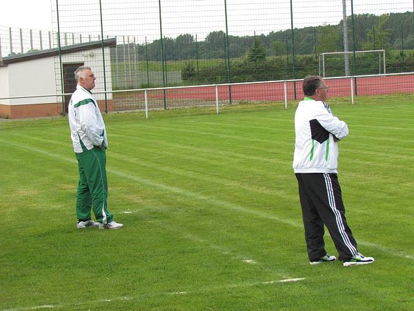 Auf dem Kunstrasen unseres Dr.Fritz-Fröhlich-Stadions fand das Stadtderby statt. Unsere zweite SVR-Elf erlebte eine 1:8 Pleite gegen Heuersdorf. Die Torfolge: 0:1 Sven Wiedemann, 0:2 u. 0:3 Lutz Junghans, 0:4 Ronny Kampers, 0:5 Marco Günther, 1:5 Stefan Gentsch / Pause / 1:6 Heiner Schuster, 1:7 Ronny Kampers, 1:8 Nico Syrbe. Schiedsrichter war Andreas Krug. |