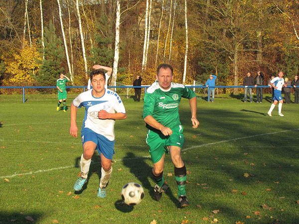 In der Glückauf–Sportstätte war ein Punktspiel der Fußball–Kreisoberliga, mit Vereinen zweier Nachbarorte, SV Blau – Weiss Deutzen gegen unseren SV Regis– Breitingen. Es war auch das Spiel zweier Pleißestädter. Bei schönem Herbstwetter waren einhundertsechsundfünfzig Zuschauer gekommen, und sie sahen ein kämpferisches Spiel, das sich im Rahmen bewegte. Wir Gäste aus Regis begannen druckvoll und erspielten uns gute Torchancen, zur Freude unseres Trainers Sven Licht, der seine Elf - an der Außenlinie stehend - anfeuerte. Deutzens Trainer Klaus–Dieter Fekete forderte seine Elf auf, nicht zu diskutieren, sondern Fußball zu spielen, ansonsten muß er Spieler auswechseln. In einigen Szenen wirkte die Deutzener Abwehr unsicher um ihren Oldytorwart Jörg Hallensleben (68´er Geburtsjahrgang). Eine der Torszenen war nach fünfundzwanzig Minuten ein Eckball unseres Regisers Michael Kuhrau, dessen Ball in den Strafraum flog und von Freund und Feind knapp verfehlt wurde. Nur drei Minuten später, Thomas Bauer versuchte es von halblinks, scheiterte aber am Torwart Hallensleben, der per Faustabwehr klärte. Weitere zwei Minuten später trat Christian Kreisel nahe der Mittellinie auf linksaußen für Deutzen einen Freistoß. Dieser flog über den halben Platz zum gegnerischen Strafraum, und Jimmy Lange schoß seine Deutzener mit 1:0 im Führung (30.). Das Spiel war sprichwörtlich auf den Kopf gestellt. Kaum war der Torjubel verhallt (34.), da konnte Sandy Eisert nachlegen, doch er scheiterte an Andre Sommer, der in letzter Sekunde den Ball aus unserem Regiser Strafraum wegschlug. Das Spiel näherte sich der Pause (43.). Christoph Rother lief auf rechtsaußen und flankte in den Deutzener Strafraum, doch ein Tor wollte nicht fallen. Und dann kam vom souveränen und neutralen Schiedsrichter Jens Tietze der Pausenpfiff. PS: Seine Kitzscheraner stecken auch im Abstiegskampf wie die Regiser. Assistiert wurde er von Tommy Riedel und Andreas Voigt. Mit dem Wiederanpfiff setzten wir Pleißestädter aus Regis–Breitingen unsere Linie fort, mußten aber bei den Gegenangriffen aufpassen. Inzwischen waren sechzig Minuten gespielt. Auf halbrechts trat Michael Kuhrau einen 20-m–Freistoß, der knapp am rechten Deutzener Lattenkreuz vorbei ging ins Aus. Das war ein Achtungszeichen! Und dann passierte es: Vier Minuten später (64.) war ein Regiser Wechsel, für Christoph Rother kam Rick Thomas ins Spiel. Eine weitere Minute später, mit dem nächsten Angriff, kam von Michael Kuhrau ein Paß zu Sören Paul, der zum 1:1 Ausgleich einschoß. Das Besondere an der Torfreude war, das Sören Paul nach einer längeren Durststrecke wieder mal eine seine Torchancen nutzte. Nachdem von Maik Günther der Ball kam (71.), hatte Paul einen weiteren Torschuß auf dem Fuß, scheiterte aber am Torwart Hallensleben. Und dann war es Maik Günther, der am Torwart scheiterte (73.). Eine weitere Minute gespielt (74.), von halblinks flackte Alexander Wendt in den Strafraum, Paul war zur Stelle und machte im Spiel sein zweites Tor. Es stand nun 1:2 für uns Pleißestädter aus Regis– Breitingen. Das Spiel lief weiter. Nach einem Thomas Bauer–Paß von links hatte Mike Güther (sein Bruder Michael spielt für Deutzen) die Spielentscheidung auf dem Fuß, scheiterte aber freistehend (81.). Die Schlußminuten waren angebrochen. Deutzen wollte den Ausgleich, doch da waren unsere sicher stehende Regiser Abwehr und unser Torhüter Peter Heinze. Was wir Regiser in dieser Spielphase richtig machten, wir verschafften uns Luft mit langen Bällen nach vorn. Schiedsrichter Jenz Tietze ließ mehrere Minuten nachspielen, doch ein weiteres Tor wollte nicht fallen. Schlußpfiff, im Spiel der beiden Nachbarorte verlor (Heim) Deutzen mit 1:2 Toren gegen unser Regis–Breitingen, zur Freunde unser mitgereisten Fans. Es ist nach mehreren unglücklichen Niederlagen (wie schießt man Tore) der erste Saisondreier für unsere SVR–Elf und die Wende. Und diese sollte nun in den nächsten Spielen ihre Fortsetzung finden. Nach dem Duschen standen beide Mannschaften noch vor dem kleinen blau–weissen Vereinsgebäude, und in gemischten Runden wurde sauber und fair dieses Fußballderby ausgewertet. Schiedsrichter: Jens Tietze, assistiert von Tommy Riedel, Andreas Voigt Die Ansetzungen: Samstag, 15. Nov. - Heimspiel gegen Waldheim; Anstoß 14.00 Uhr Sonntag, 23. Nov. - auswärts gegen Naunhof; Anstoß 14.00 Uhr Sonntag, 30. Nov. - auswärts gegen FSV Kitzscher; Anstoß 14.00 Uhr Samstag, 06. Dez. - Heimspiel gegen Alemania Geithain; Anstoß 13.30 Uhr Samstag, 13. Dez. - Heimspiel gegen SV Groitzsch; Anstoß 13.30 Uhr danach Winterpause! |