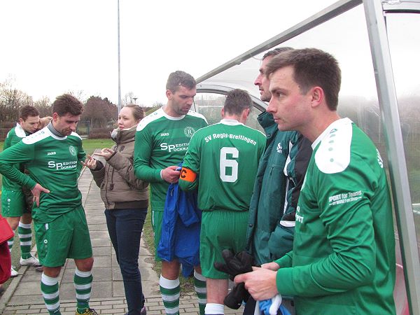 Die Rennstädter (in Blau) hatten einen guten Start und erzielten drei ihrer sechs Tore in der ersten Viertelstunde und danach noch ein viertes. Nach fünfundzwanzig Spielminuten war die erste nennenwerte Torchance unserer Pleißestädter (in Grün) zu sehen, als Christoph Rother freistehend zum Kopfball kam. Kurz vorm Pausenpfiff erzielten wir den Anschlußtreffer. Nach dem Seitenwechsel konnte Frohburg mit zwei weiteren Toren nachlegen. Unsere Heimelf von der Pleiße gab sich nie auf und erzhielte noch zwei Anschlußtore, so dass es bei drei Toren Unterschied für die Gäste blieb. Die Torfolge: 06. Min. 0:1 Toni Frank 13. Min. 0:2 Alexander Steinbach (aus spitzem Winkel) 15. Min. 0:3 Alexander Steinbach 34. Min. 0:4 Florian Schütze 42. Min. 1:4 Tino Naumann Schiedsrichterpfiff zum Pausentee durch Patrick Rohr 47. Min. 1:5 Pilipph Jacob 50. Min. 1:6 Alexander Steinbach 61. Min. 2:6 Christoph Winter (nach Torwartfehler) 68. Min. 3:6 Sören Paul (mittig Drehschuß) Schlußpfiff !!! Was rund um das Testspiel noch erwähnt werden sollte: Wir Regiser hatten nur einen Wechselspieler, während bei Frohburg zeitweise vier Spieler auf der Bank saßen. Die Wechsler trotzten dem eisigen Wind, indem sie sich durch Ausdauerläufe warm hielten. Ursachenforschung für unsere Pleißestädter Niederlage; für uns Regiser um unseren Kapitän Sven Streitberg war es nach der Winterpause der erste Freilufttest. Vielleicht war es auch das Fehlen des verhinderten Spielertrainers Swen Licht, dessen Dirigieren von der Außenlinie fehlte. Was noch auffiel: die Parkplätze und eine Anliegerstraße, unmittelbar am Stadion, waren zugeparkt. In der zu unserem Dr. Fritz–Fröhlich–Stadion gehörenden Sporthalle veranstaltete der TSV Lobstädt, zusammen mit dem 1.FC Lok Leipzig, ein Fußball–Nachwuchturnier. Und für den Sonntag wurde ein weiteres Nachwuchturnier angekündigt. Angemerkt, in der Vorwoche mußte unser SVR–Testspiel gegen den SV Lok Engelsdorf witterungsbedingt ausfallen (Tauwetter). Siehe auch Leipziger Sportbuzzer, einem zur Leipziger Volkszeitung (LVZ) gehörenden Internetportal. Vorausgeschaut: Samstag, 06.02.2016 Testspiel, 14.00 Uhr SV Regis–Breitingen gegen SV Spora - abgesagt !!! Ursache: In Sachsen–Anhalt sind Nachholer angesetzt !!! Interessenten für ein Testspiel auf dem Kunstrasen unseres Dr. Fritz–Fröhlich– Stadions bitte beim Vereinschef Werner Heiche (Sportgaststätte) melden. Samstag, 13.02.2016 Dr. Fritz–Fröhlich–Stadion Heimpunktspiel–Nachholer; Anstoß 14.00 Uhr SV Regis–Breitingen gegen SV Groitzsch Zweite Sonntag, 21.02.2016 auswärtiger Punktspiel–Nachholer; Anstoß 14.00 Uhr Thierbacher SV gegen SV Regis–Breitingen |