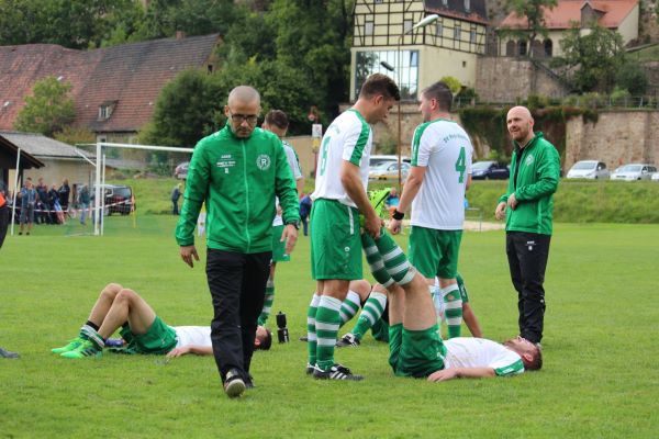 Zu Füßen den Burg Gnandstein wurde vor neunzig Zuschauern ein Fußball-Kreispokalspiel der Region Muldental/Leipziger Land ausgetragen. Die Burgherren der SG Gnandstein (in Rot) spielten gegen unsere Pleißestädter vom SV Regis-Breitingen (in Weiß-Grün). Wir Gäste von der Pleiße erspielten uns zunächst die besseren Einschußmöglichkeiten, während die Burgherren bei ihren Gegenstößen durch Franz Rößner und Peter Heinich gefährlich wurden. Kurz nach dem Seitenwechsel war im Strafraum ein Festhalten. Der Schiriepfiff kam, Michael Schmidt schritt für Gnandstein zum Elfmeterpunkt und unser Torwart Andreas Winkler vernichtete den Ball. Im Gegenzug sahend wir Regiser ein Foul im Strafraum an Christoph Winter, doch nach der Behandlung der Verletzung zeigte der Schiedsrichter auf Einwurf für die SGG. Dann lief Nico Hohenstein auf der rechten Seite und Christoph Winter köpfte seinen Ball zum 0:1, für uns Regiser, ins Tor. Gnandstein bekam einen weiteren Foulelfmeter und Florian Weber markierte den 1:1 Ausgleich. Das war drei Minuten vorm offiziellen Schluß vom Schiedsrichter Matthias Sommer, assistiert von Sebastian Barufe und Holm Haase. Was folgte war die Verlängerung. Auf der rechten Seite lief Martin Grunert und vollendete zum 1:2 für uns Pleißestädter. Zehn Minuten später machte Kendy Schmidt per 20m - Schuß (ins rechte obere Eck) den 2:2 Ausgleich. Im Gegenzug kam ein Paß von Alexander Wendt, den Christoph Krause zum viel umjubelten 2:3 für uns stark spielenden Gäste von der Pleiße einschoß. Im zweiten Spielabschnitt der Verlängerung hatten die Burgherren (Trainer: Enrico Kühn) Feldvorteile durch Kraftreserven und drängten auf den Ausgleich. Unsere Regiser Abwehr stand sicher und da war Torwart Andreas Winkel, der wichtige Rückhalt. Was kam war der Schlußpfiff und wir Pleißestädter vom SVR (um Trainer Swen Licht) bejubelten unseren 2:3 Auswärtssieg und das Erreichen der nächsten Kreispokalrunde. Das es ein Kraftakt war, also mit Gegenwehr, das kann man in einigen meiner Bilder sehen. Am nächsten Samstag erwartet uns Pleißestädter eine andere schwere Hürde, zu Hause im Punktekampf den Spitzenreiter Roßweiner SV, gestartet mit drei Siegen. Doch vorher ist Leichtathletik im Stadion. Udo Zagrodnik / 02.09.2017 |