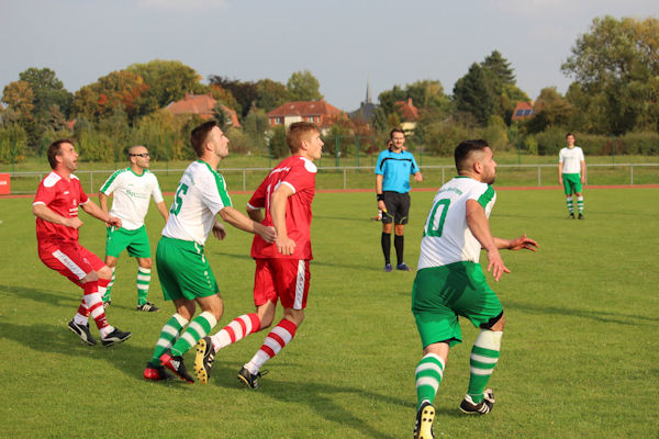 Samstagnachmittag, im Dr. Fritz-Fröhlich-Stadion rollte der Kreisoberligafußball, unser SV Regis-Breitingen (in Weiß-Grün) gegen den Spitzenreiter SG Gnandstein (in Rot). Rund fünfzig Zuschauer saßen auf der zweigeteilten Tribüne. Auf dem Rasen entwickelte sich ein offenes Spiel mit Feldanteilen auf beiden Seiten, doch große Torchancen gab es nur einzelne. Nachdem über eine halbe Stunde gespielt war, scheiterte unser SVR-Kaptiän Sven Streitberg freistehend am Torwart Marcel Naumann. Nur fünf Minuten später, auf der Gegenseite kam von Halbrechts ein Paß von Tim Illgner, den Patrick Rohr volley zum 0:1 einschoß. Vom Schiedsrichter Christopher Tauchmann kam der Pausenpfiff. Assistiert wurde er von Peter Ludwig und Kevin Mortan. Zehn Minuten nach dem Wiederanpfiff fiel das 0:2 per Flachschuß von Tim Illgner. Fast im Gegenzug kam der gerade eingewechselte Christoph Krause in Ballbesitz und markierte per Knaller den 1:2 Anschlußtreffer. Die Begegnung war wieder offen. Die Burgherren machten hinten dicht und fuhren Konter. Nach achtzig Spielminuten wurde ein Peter-Heinze-Schuß vom Torwart Daniel Dietze vernichtet. Der folgende Eckball flog in den unseren Regiser Strafraum auf den Kopf von Patrick Rohr und danach in die Arme des Torwarts. Nur eine Minute später übersah der Linienrichter eine Abseitsstellung der Burgherren (die einzige strittige Szene im Spiel). Die Heimfans protestierten lautstark, doch das Spiel lief weiter. Von Halbrechts brachte Peter Heinig den Ball in unseren Regiser Strafraum zu Steven Liebing, doch der schoß den Ball freistehend knapp neben das Tor und die Fans der SGG stöhnten. Die Schlußphase lief und wir Pleißestädter vom SVR wollten den Ausgleich, doch wir scheiterten an der dicht stehenden Gnandsteiner Abwehr. Und da war noch Torwart Naumann. Bei beiden Teams fehlten an diesem Tag mehrere Stammspieler. Auf unserer Regiser Seite kam in den Schlußminuten auch Spielertrainer Swen Licht zum Einsatz, während Trainer Daniel Salomon von der Außenlinie aus versuchte unsere Elf nochmal zu motivieren. Am Ende blieb es beim 1:2 für die SG Gnandstein, die ihren Spitzenplatz festigte. Schaut man auf die Tabelle der Kreisoberliga, da sind in der Spitzengruppe mehrere Teams eng beieinander. Kleines Fazit: Aus Pleißestädter Sicht war ein Unentschieden möglich, doch vorn im Sturm fehlte die Durchschlagskraft. Vorausgeschaut Fußball-Kreisoberliga Muldental/Leipziger Land: Samstag, 30.09.2017 / Fußball-Kreisoberliga Muldental/Leipziger Land / Anstoß 15 Uhr / TSV Burkartshain gegen SV Regis-Breitingen Udo Zagrodnik / 23.09.2017 |