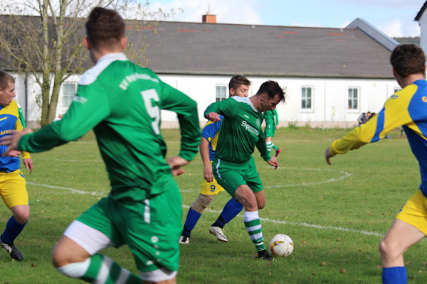 Eine der Begegnungen im Fußball-Kreispokal Muldental/Leipziger Land wurde in einem Lossataler Ortsteil (nördlich von Wurzen) ausgetragen. Vor fünfzig Zuschauern spielte der TSV Blau-Gelb Großzschepa (in seinen Vereinsfarben) gegen unseren SV Regis-Breitingen (in Grün). Über die gesamte Spielzeit waren wir Gäste von der Pleiße (Kreisoberliga) die spielbestimmende Mannschaft gegen den Spitzenreiter aus der Kreisliga B Nord. Der Torreigen (in dieser jederzeit fairen Begegnung) begann nach gut einer Viertelstunde. Wir Regiser schossen eine 0:2 Pausenführung heraus und gewannen am Ende mit 0:4 Toren, sind locker in die nächste Pokalrunde eingezogen. Den Jung´s von der Lossa muß man bescheinigen, dass sie sich nie aufgaben und auch eigene Torchancen erspielten. Doch bei uns "Sportfreunden" von der Pleiße steht Andreas Winkler im Tor, der seine Sache ordentlich macht, seinen Kasten immer öfter reine hält.